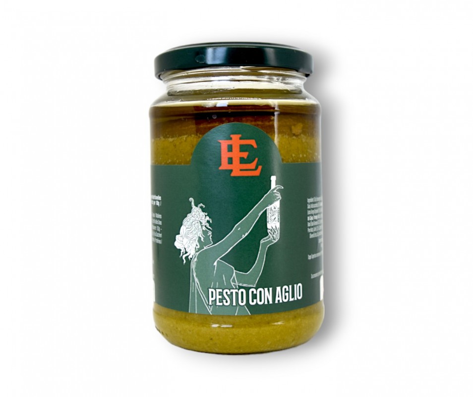 Il nostro Pesto è l’ideale per chi vuole avere sempre a disposizione uno dei sapori che più rappresentano la Liguria. Viene preparato con materie prime di ottima qualità. Ottimo sulla pasta, il nostro pesto è un prodotto concentrato quindi vi consigliamo di allungarlo con un po’ di olio extravergine, panna da cucina o acqua di cottura. La tradizione ligure lo richiama come condimento per la pasta, più precisamente le trenette o le trofie, ma con il tempo gli utilizzi si sono ampliati, quindi non un semplice sugo: provate il nostro pesto come accompagnatore delle carni rosse o nei salatini, ne rimarrete stupiti. Questo prodotto contiene l'aglio, ma per i meno amanti dell’aglio forniamo la possibilità di acquistarlo senza! (vedi altra variante sul catalogo prodotti).