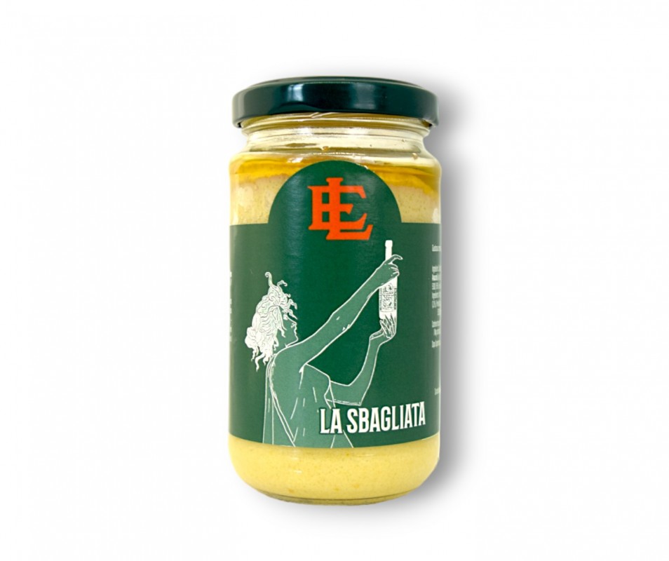 La nostra crema più aggressiva è senza dubbio la Salsa all’Aglio (denominata "LA SBAGLIATA"), anche se, diversamente da ciò che si può dedurre dal nome, a farla da padrona sono l’equilibro e la delicatezza. La base, infatti, è di carciofi, olio extravergine di oliva, anacardi e pinoli e l’aglio fresco è presente con solo l’ 1,2% del prodotto con il risultato di una crema delicata e armoniosa, che dà la possibilità a chi ama il gusto dell’aglio di poterlo assaporare nel pieno del suo sapore ma ad un’intensità controllata. Prodotto con carciofi, aglio fresco e olio extravergine di oliva.